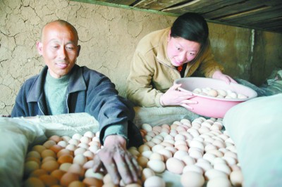 通过网络,老于找到了销售鹅雏的好形式,不断有人在网上和他预约,每只鹅蛋卖6元,每只鹅雏卖10元。老于给记者算了一笔账,这一年下来,在养殖这一块,收入就在3万元以上。老于的鹅蛋有特点,每只都有用铅笔写的名字。他说这是通过网络认识了黑龙江和吉林的客户,由于路远,客户就不到他家来实地考察了,而是交了一些定金,让他帮忙孵化鹅雏,等成活了再拉走。由于老于的鹅雏成活率高,很多网友请他帮忙孵化鹅雏。为了区分客户,老于想出了在蛋上写名字的办法。