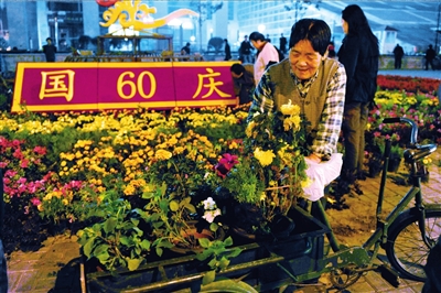 本报讯(记者陈婷)昨天是朝阳区幸福广场国庆花坛展示的最后一天,今天花坛将被撤走。但昨天傍晚时分,千余盆草花遭到附近居民和过路市民“哄抢”,花坛一片狼藉。三里屯街道办称,居民如愿续养,可以将花取走,脏乱的现场将连夜清扫完毕。