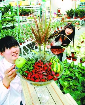 日前,一种玻璃容器组合盆栽花卉亮相丰台世纪奥桥花卉超市,将多种观赏植物同植在一个玻璃容器内,这种方式在国内很少见,新颖的构思,巧妙的搭配,受到市民青睐,不少人前来询问、购买。黄秀慧/文并摄