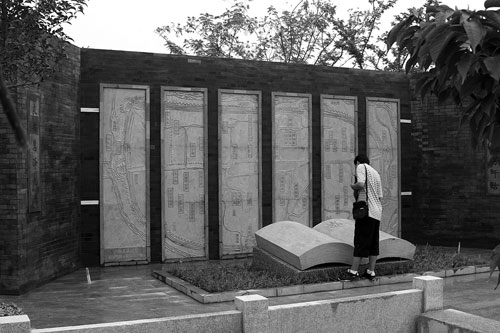据介绍,“天一苑”的整体布局参照了天一阁,突出塑造江南水乡大户人家的感觉。该园的最大特色是外水系,展园墙外水系围绕展园一圈,为济南园博园中所独有。“天一苑”正对门是一道屏风墙,屏风上刻有清朝乾隆年间绘制的鄞县县城图,屏风墙前为《鄞县通志》,屏风墙的背面还刻有著名学者黄宗羲对天一阁藏书评价的题词。