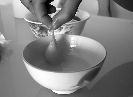 开始张先生怀疑是煮的时间长,把鸡蛋煮老了。但是第二天、第三天煮出来的鸡蛋还是这个样子。他告诉记者,煮熟的“鸡蛋”蛋黄特别有弹性,就像乒乓球,将蛋黄扔在桌面上,蛋黄不仅没有摔碎,还能从桌面上轻轻弹起。蛋黄捏在手里,不像平常的鸡蛋一样成粉状,而是像胶体,不容易掰开。