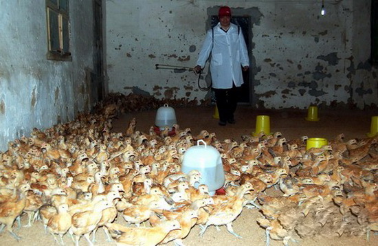 11月11日,岳西县黄尾镇黄尾村一家养鸡场内,工作人员正在给鸡舍消毒。去年,该村农民汪正发与人合伙投资20多万元建起这个养鸡场,养殖生态土鸡、绿壳蛋鸡等,年获纯利近10万元。 王国栋 摄