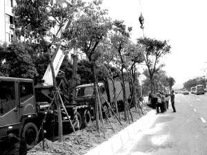 据了解,清河东路邮政大厦地段道路中间设置的是金属隔离栏,最近被改造成为绿化带,现已进入绿化阶段。昨日上午,记者在该地段看到,市政园林工作人员运来了两卡车榕树。他们用吊车将榕树从卡车上吊出来,放在绿化带的树坑里,然后再培土。据工作人员介绍,清河东路的绿化带要栽的树有二三十个品种,包括榕树、盆架子、宫粉紫荆、香樟等。植完树后工人还要栽花种草,互相搭配,令绿化带的景观更美丽。