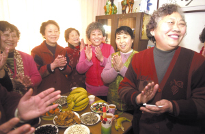 据介绍,四方区2007年拨出专项资金,在辖区成立了54个互助养老点,方便住在同一栋居民楼上的老人相互照看。春节临近,四方区500多名老人凑在一起提前过年,互道“过年好”。今天,民政部门把部分五保户老人接到福利院,让老人在春节期间有人照料。