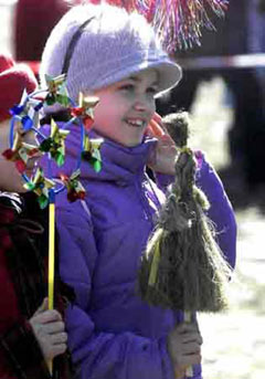俄罗斯:送冬节庆祝活动上兴高采烈的孩子。