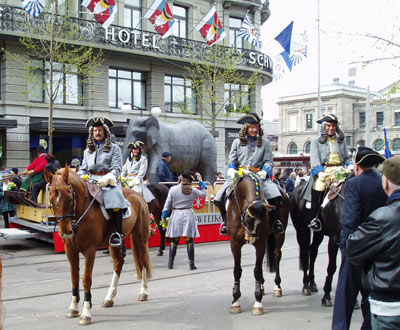 瑞士:苏黎世街头热闹的花车巡游。
