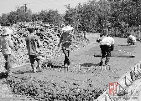驱车到距主干道约2公里的勐捧镇曼种村委会下中良村的道路改造现场。10多名施工人员正忙碌地搅拌、运送水泥,夯打、平整路面水泥浆。村支书车飘自豪地说:“这是大家集资82万元来修的进村水泥路,长2469米、宽5米。下一步我们打算修通连接勐哈村的水泥路,那时,就不必再走晴通雨阻的泥巴路了。”据悉,该村民小组有71户350余人,2007年人均纯收入达4400元。村民们建设新农村的积极性、主动性很高,不等不靠,为尽快改善居住环境,通过召开“一事一议”村民大会,每户自愿出资1万多元共筹资82万元,村内道路己修建成水泥路,进村水泥路也即将完工。