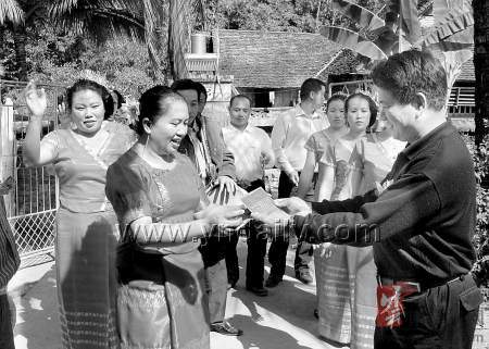 沐浴着初春柔和温暖的阳光,记者驱车到位于中老边境一线的勐腊县勐捧镇傣家边寨、哈尼山村采访了两天,所到之处:连绵起伏的橡胶林吐芽绽绿,茫茫碧海般的香蕉园坠满果实,阡陌交错、绿意盎然的田野,宽敞平坦的一条条水泥道路、柏油道路伸进村寨,傣、哈尼等各族干部群众精神饱满、你追我赶紧张劳作的场面,使我们真实地感受了这里新农村建设的热烈氛围,一幅幅社会主义新农村的秀丽画卷正在中老边境线上徐徐展开。