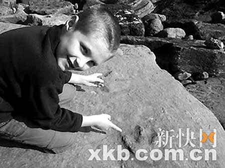 发现恐龙脚印的小男孩名叫里斯·尼可斯。不久前,他与父亲一起在离家不远处的海边沙滩上漫步,忽然注意到在一块岩石上有一些清晰可辨的印痕,长约为9英寸。聪明的里斯马上意识到这些印痕很可能是恐龙留下来的。里斯的想法很快得到了专家们的证实,脚印确实是侏罗纪时代的禽龙留下的,距今约有1.6亿年。