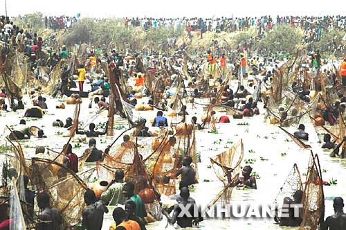 尼日利亚阿尔贡古捕鱼节开幕3万渔民河中捕鱼