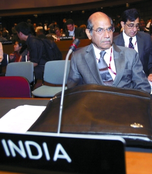 3月31日,曼谷,印度代表在曼谷气候变化大会会场上。