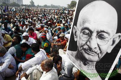 贫穷的印度农民举行示威游行,要求取回失去的土地。华盖资料