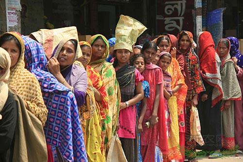 在孟加拉国首都达卡,人们在政府开设的平价米店前排队买米。新华社发(扎曼 摄)