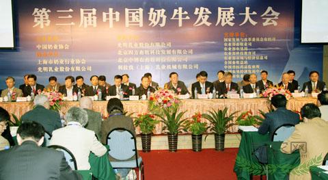 农业部副部长高鸿宾在致辞时说,近几年来,我国奶业持续健康发展,预计2007年我国奶类总产量3650万吨;奶牛存栏1470万头;乳制品产量1787万吨,工业总产值1348.81亿元;全国城镇居民平均乳制品(鲜乳、奶粉、酸奶)消费量26千克,农村居民奶类消费量也有较大幅度增长。目前,我国饲养奶牛的农户约210万户,奶牛业产值达到673亿元,户均收入32000元;青贮饲料的种植面积达到1000万亩。