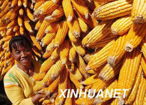 资料图片:2007年9月16日,贵州镇宁县朱家庄农民尹喜秀在翻晒刚收获的玉米。(新华社记者杨俊江摄)
