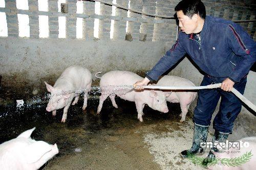 4月26日,河南省汤阴县五陵镇旱塔河村“大学生村干部”、村党支部副书记李国强正在清理猪舍卫生。2005年12月,李国强通过考试成为安阳市汤阴县第一批“大学生村干部”,任五陵镇旱塔河村党支部副书记。中新社发张志勇摄