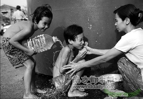 小孩在仰光市街头洗澡。本报记者谭伟山摄