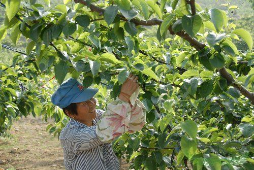 5月6日,园艺师在天目湖玉枝特种茶果园艺场 给果树的果实进行套袋管理