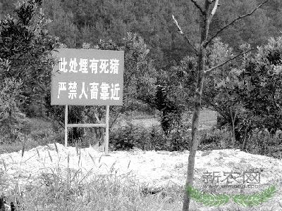 因不少地方埋有死猪,灾区群众担心引发人畜感染,就栽下这样的警示牌