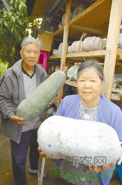 朱伯佐夫妇将自己种植的冬瓜分给亲朋好友和邻居。