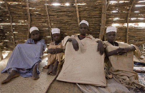 6月19日,来自达尔富尔地区的难民坐在乍得东部的一个难民营内。