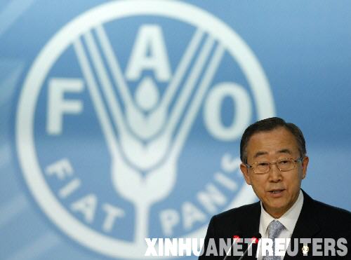 6月3日,联合国秘书长潘基文在意大利罗马举行的“世界粮食安全与气候变化及生物能源的挑战”高级别会议上发表讲话。此次会议为期3天,由联合国粮农组织倡议发起,100多个国家的领导人或部长级官员以及有关国际组织的官员参加此次会议。新华社/路透