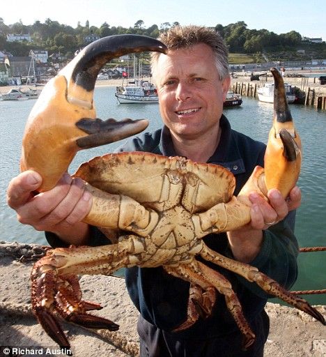 中国网7月3日报道据英国每日邮报网站报道,英国男子保罗近日在英国近岸捕获了一只身形庞大的螃蟹。这只螃蟹重达17磅,蟹壳宽度有12英寸,特别是它那只巨大的蟹钳足有成年男子的手掌那么大。