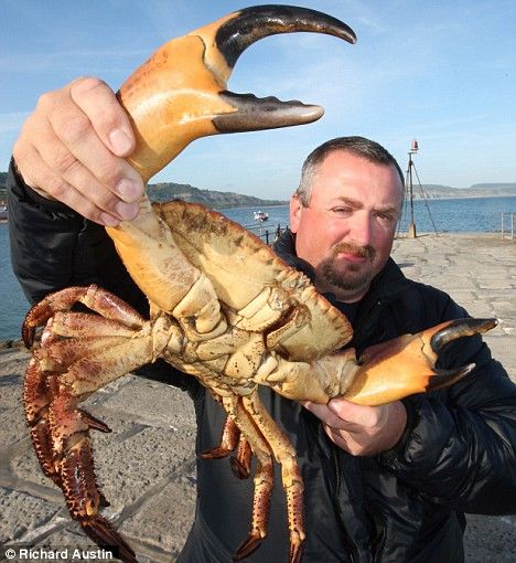 英国男子保罗近日在英国近岸捕获了一只身形庞大的螃蟹。这只螃蟹重达17磅,蟹壳宽度有12英寸,特别是它那只巨大的蟹钳足有成年男子的手掌那么大。