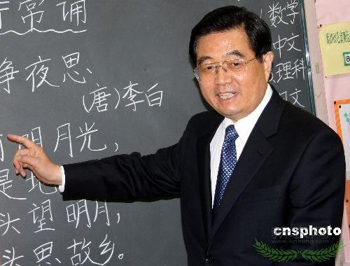 国家主席胡锦涛5月9日出访日本参观横滨山手中华学校 中新社发