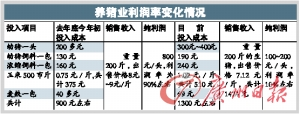 不过,自今年第二季度开始,由于生猪价格下跌,而饲料价格不断上涨,养一头猪的毛收益只有100~200元了,利润率下降至百分之十几。