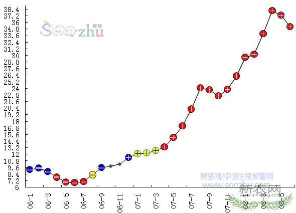 所幸的是,在母猪存栏濒临“失控”的关键点,“猪价拐点”及时出现,且随即开始大幅下跌,非常及时的抑制了母猪的补栏,为养猪热“降温”!其产生的意义可能是:不仅抑制了远期后市生猪供应的过剩,而且还可以避免生猪市场陷入恶性循环的泥淖,从而减轻对宏观经济的影响。