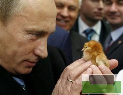 普京饶有兴致地观看手中的小鸡崽。