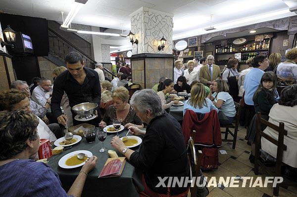 西班牙一家餐馆新近推出“一欧元”午餐,帮助那些饱受经济疲软打击的顾客节省开支。