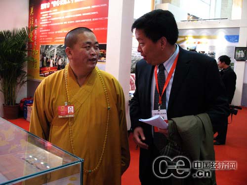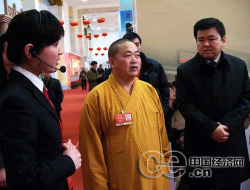 中国经济网北京3月2日讯 (记者张静) 今日上午9时,“河南农民工风采展”在全国农业展览馆拉开序幕,来北京参加全国“两会”的河南代表、委员出席了开幕式。记者在其中发现了全国人大代表、少林寺方丈释永信的身影,“少林寺CEO”也前来为农民工助阵。释永信在展厅受到代表委员、媒体记者以及展会工作人员的热情追捧。