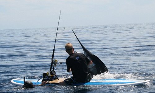 马特从冲浪板上钩住一条枪鱼,这条巨大的枪鱼拖着他跑了11公里,有时候甚至速度极快,甚至可以站在板上。纠缠了90分钟后,这名勇敢的钓手放了这条鱼。马特的这个团队共有5人,大家帮他完成了这一绝技,但他想说的是,这些危险的绝技只有经过多年实践才能练就。他说:“这么多年来,我一直都围着大鱼转,所以我积累了丰富的经验。我知道该怎么对付鲨鱼或枪鱼之类的大鱼。但把我比喻成史蒂夫·艾尔文,真是我莫大的荣幸。他是那么成功。”