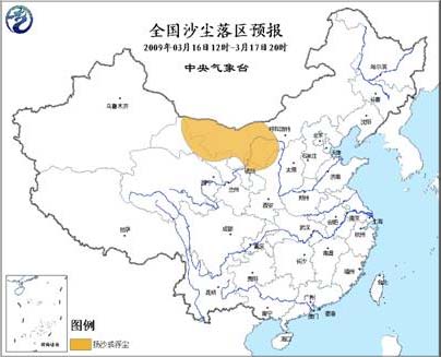 全国沙尘落区预报(3月16日12时~17日20时)