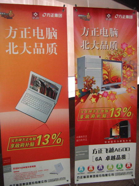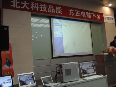 此外,方正科技还对电脑下乡产品进行了全面提升,下乡产品全部预装正版Windows操作系统,台式机最低配置已达到内存1G、硬盘160G、LCD最低19英寸的中等配置,笔记本最低配置也达到1G内存、硬盘160G的主流配置。