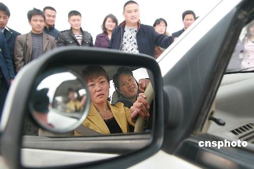 3 月19日,在山东省临沂市罗庄区一驾驶学校,来自临沂莒南的农民刘恒娟和同村的村民在教练的指导学习倒桩驾驶。继“家电下乡”之后,国家又推出了“汽车下乡”政策,许多未买车的农民朋友也纷纷学起了驾驶,临沂市各大驾校来自农村学员的比例日趋增多。 中新社发尹召功 摄
