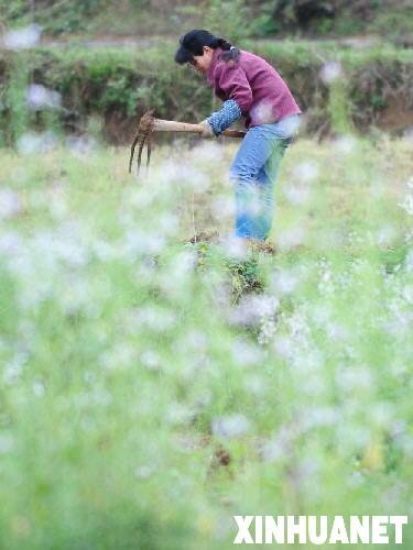 3月28日,贵州省湄潭县一位村民在田间劳作。随着气温持续回升,在贵州高原的田间地头,农民们开始松土耕地、播种施肥忙春耕。新华社记者杨俊江摄