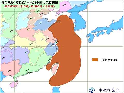 受“莫拉克”和西南季风的共同影响,今天白天到夜间,巴士海峡、巴林塘海峡、台湾海峡、台湾以东洋面、东海、福建中北部沿海、台湾省沿海、浙江沿海、杭州湾、上海沿海、长江口区、江苏沿海、山东半岛沿海及黄海大部将有6-8级大风,部分海域或沿海地区的阵风可达 9-10级;山东东部、江苏东部和南部、安徽东南部、浙江西北部和西南部、福建西北部和东南部、台湾西南部、广东南部、海南东北部等地有大雨,其中,山东东部、江苏东北部、福建南部沿海、广东珠江口地区等地的部分地区有暴雨,局地大暴雨。
