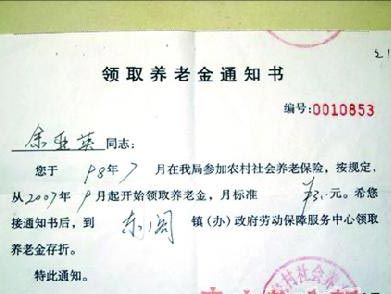 一个月拿3元养老金,如此雷人的真事就发生在身边。据8月25日《潇湘晨报》报道,网友爆料《“最牛养老金”称,海南文昌市东阁镇侠夫玉山村的余亚英老人,1947年8月出生,保险号码为0501347001,于1998年7月参加了农村社会养老保险,按照规定从2007年9月开始领取养老金,月标准人民币3元,自2007年9月开始领取养老金。