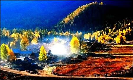 初秋美景藏在乡村里。在喀纳斯湖旁的白哈巴村、禾木乡村,散落着村民们居住的小木屋,马儿们如星星般散落四周,整个村庄展现出一幅融合了哈萨克、维吾尔、蒙古族特色的民族风情。