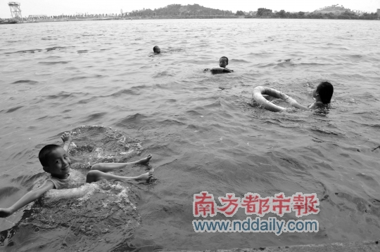 珠江当泳池快乐畅游