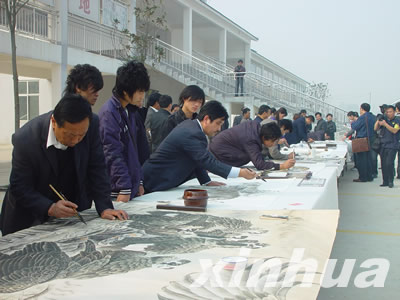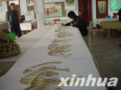 新华网河南频道11月8日电 一手拿锄杆,一手拿笔杆。地处黄河故道腹地,豫、鲁两省结合部的商丘市民权县北关镇王公庄村,原本是豫东一个风沙盐碱肆虐的穷乡僻壤,如今却成了遐迩闻名的中国画虎第一村。据村民介绍,在王公庄村,画老虎有传统,可过去谁也没有把它当饭吃,几年前一个村民偶然进城卖画得了几十块钱,大家才意识到,这平时瞧不上眼的小手艺竟然是个能挣钱的香饽饽。上世纪80年代,村民们逐渐开始从事绘画产业。