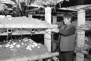 在开始种植食用菌之前,杨河村一直是以畜牧养殖和果树种植为主的。早在1983年,杨河村开始发展奶牛养殖业,由于地处北辰区西部偏远地段,当时的养殖规模很小,只有二三户人家饲养了10几头奶牛。1984年,联合国世界粮食计划署出台了一项援助计划,有力促进了我国农业经济的一些关键部门,包括林业、渔业和乳业的发展,提高了农村生产力。其中的一项就是对奶牛养殖户进行为期三年的无息贷款援助。以此为契机,杨河村有更多的家庭开始从事奶牛养殖。
