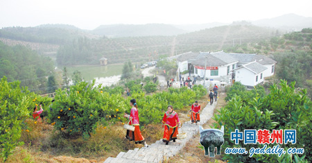 有趣的是,畲族村的党支部书记李燕会却不是畲族人。“我是嫁到畲族村的媳妇。”李书记俏皮地说。她是村里最早种脐橙的人,带领大家发家致富,去年成为畲族村民选的女书记。她告诉记者,新农村建设以来,在政府引导和大户示范带头作用下,村里兴起了以脐橙为主的果业开发热潮,建起了畲族风情园,形成了集产业发展、旅游观光、休闲度假、农耕体验于一体的经济发展模式,经常有珠三角的自驾游车队来这里旅游观光。一年下来,畲民的人均收入可达4000多元。