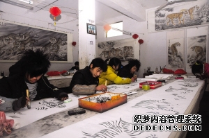 据北关镇党委书记张剑锋介绍,现在该村1366人中,有700多人从事画虎业,父子画家、夫妻画家,姐妹画家比比皆是,几代师徒联袂作画亦不在少数。一忙起来自然是集体总动员。