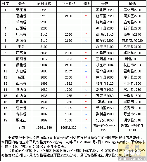 注:(1)差值为统计价格当日的各地区价格的最高值与最低值之间的差; (2)各省价格为当日各省报价数据的平均值;全国价格为当日全国报价数据的平均值 (当日全国报价数据之和/当日报价人数); (3)单位为元/公斤。