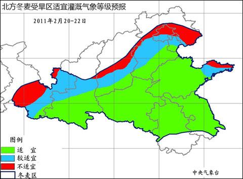 2月20-22日北方冬麦受旱区适宜灌溉气象等级预报