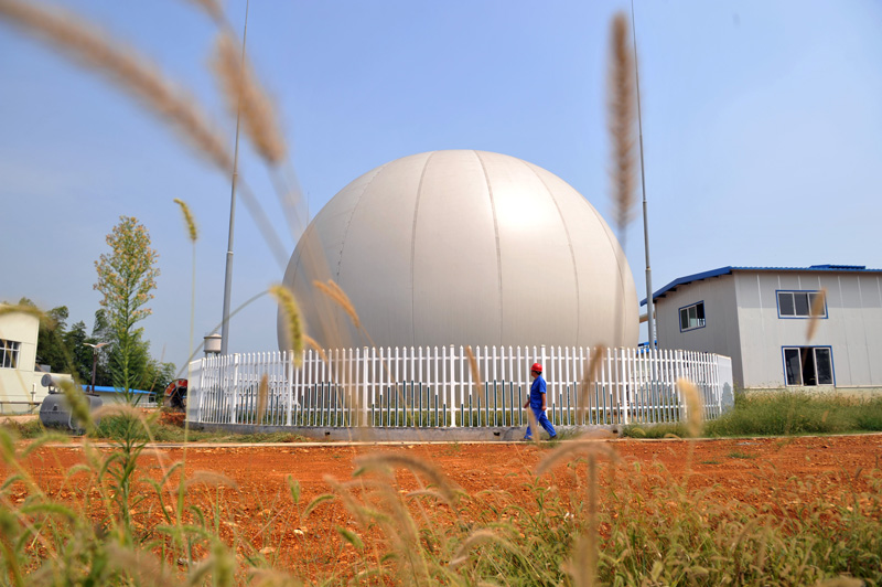 浙江兴泰农牧科技有限公司沼气发电项目的沼气贮气柜(9月2日摄)。